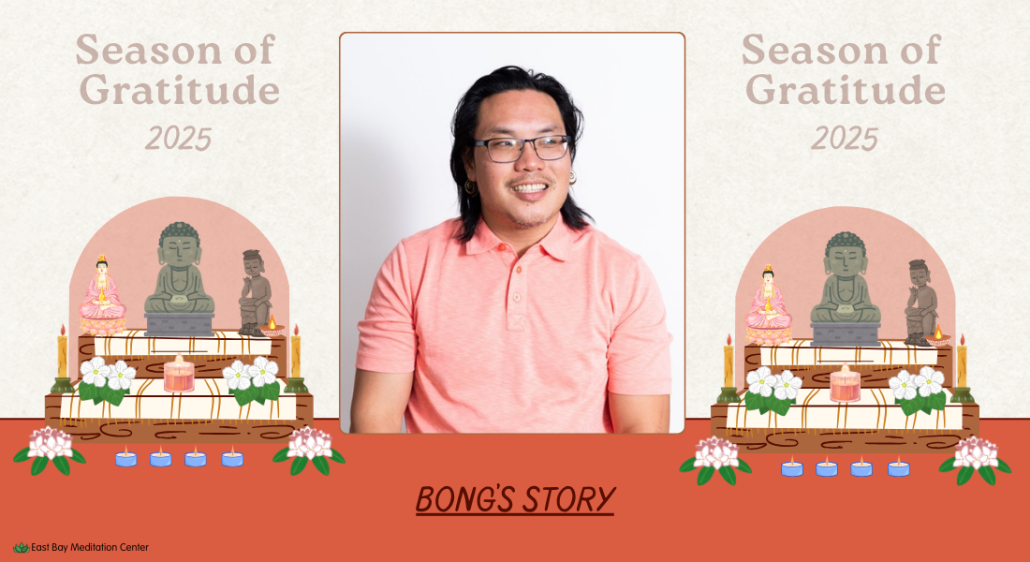 During our Season of Gratitude, we’re sharing stories from members of our Sangha about how East Bay Meditation Center has shaped their lives. This week, we’re honored to share a reflection from Bong Lau, longtime practitioner, teaching team member, and Friend of EBMC.
