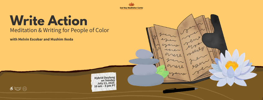 HYBRID DAYLONG: Write Action: Meditation & Writing for People of Color Sunday, July 13th 10AM - 5PM PT (Time Zone Converter) With Melvin Escobar and Mushim Ikeda Open to those who identify as BIPOC and/or mixed race Closed Captioning Provided on Zoom The center is fragrance-free and wheelchair accessible N95/KN95 masks required Do you […] We welcome you to drop by the center for unguided silent practice, our library, or a cup of tea in our kitchen. with EBMC Staff Sundays 4 - 6 PM Pacific Time EBMC is a fragrance-free center and is wheelchair accessible. N95/KN95 masks required. Note: Due to capacity limitations of our small staff, we may […] Every Body Every Mind Sangha is a weekly practice group for people living with disabilities, limitations, differences and chronic illnesses. Sundays 6:00 pm – 7:30 pm ONLINE WITH SPECIAL HYBRID DATES March 23rd 2025 with Arisika Razak April 20th 2025 with Anne Finger May 18th 2025 with Mushim Ikeda June 22nd 2025 with Anne […] |