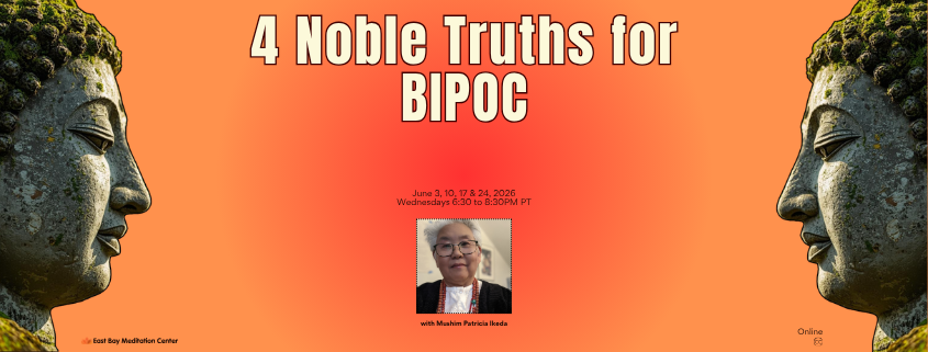 What do the basic teachings of Buddhism have to offer BIPOC? The Buddha’s first teaching after his Enlightenment is called the Four Truths for Noble Ones. Together we’ll explore how “The Four Noble Truths” have been and continue to be a deep and empowering way for Black, Indigenous and People of Color and multiracial persons to understand human suffering and oppression, analyze their root causes, and engage as individuals and collectives in moving towards profound spiritual liberation, ease and joy. Dharma talks, mindful journaling, meditation, community building and optional readings. Beginners in meditation are welcome.